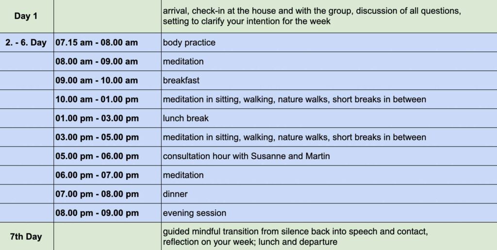 Please note: A room can only be booked once participation in the silent retreat has been confirmed! >>> Click here to reserve a room.
